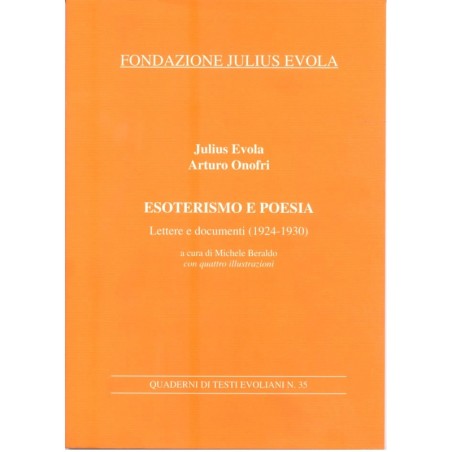 Leggi “Esoterismo e poesia“. Con 4 illustrazioni nel testo. Quattro articoli di Evola sull'esoterismo nella poesia: Tombe d'argento, Terrestrità del Sole, Poesia e realizzazione, L'esperienza metafisica nella poesia di Arturo Onofri. Le lettere di Evola ad Onofri. Tre scritti di Arturo Onofri: Appunti sul Logos, Una volontà solare, Lirica.